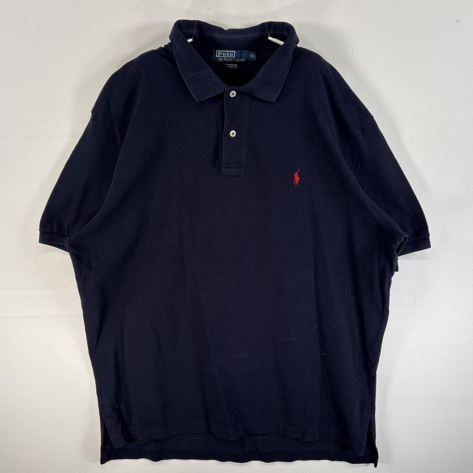 古着 90's/90年代 ポロバイラルフローレン Polo by Ralph Lauren 鹿の子 半袖 ポロシャツ ワンポイント ロゴ 刺繍 大きいサイズ 2ボタン XL ネイビー 無地 メンズ