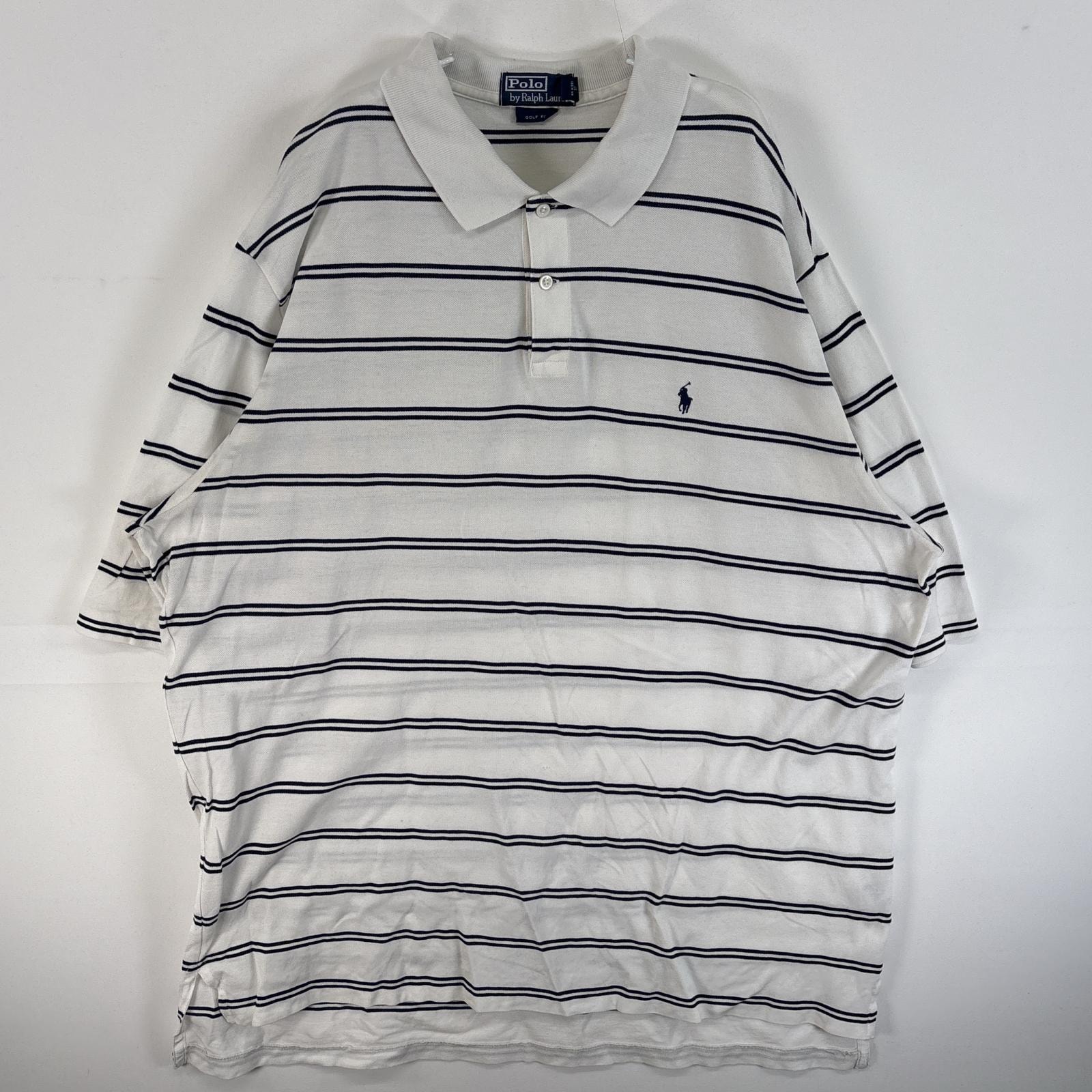 古着 90's/90年代 ポロバイラルフローレン Polo by Ralph Lauren 鹿の子 半袖 ポロシャツ ワンポイント ロゴ 刺繍 2ボタン 大きいサイズ 14041 ホワイト系 ボーダー メンズ