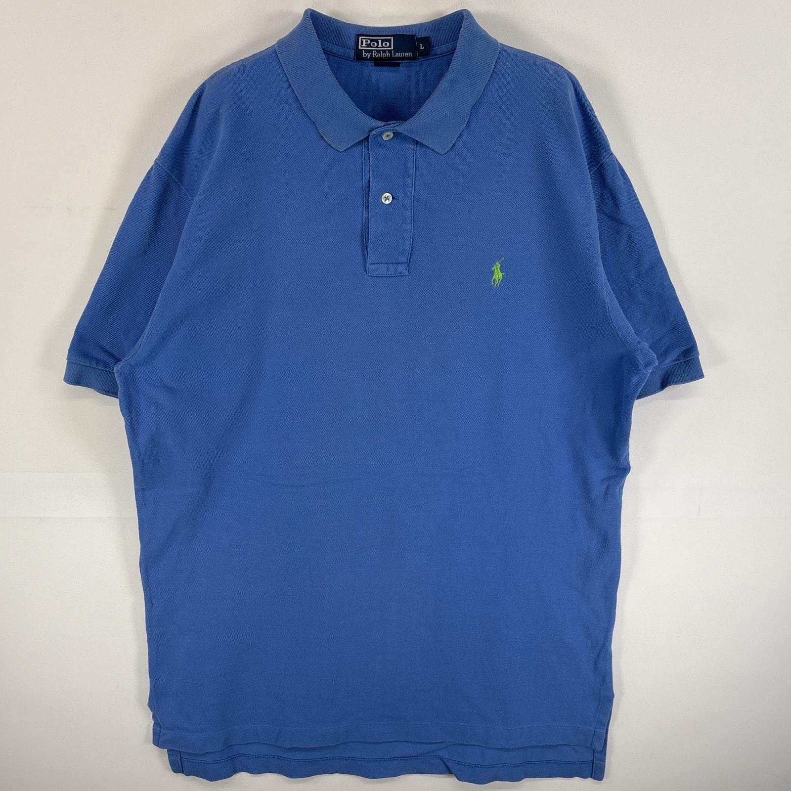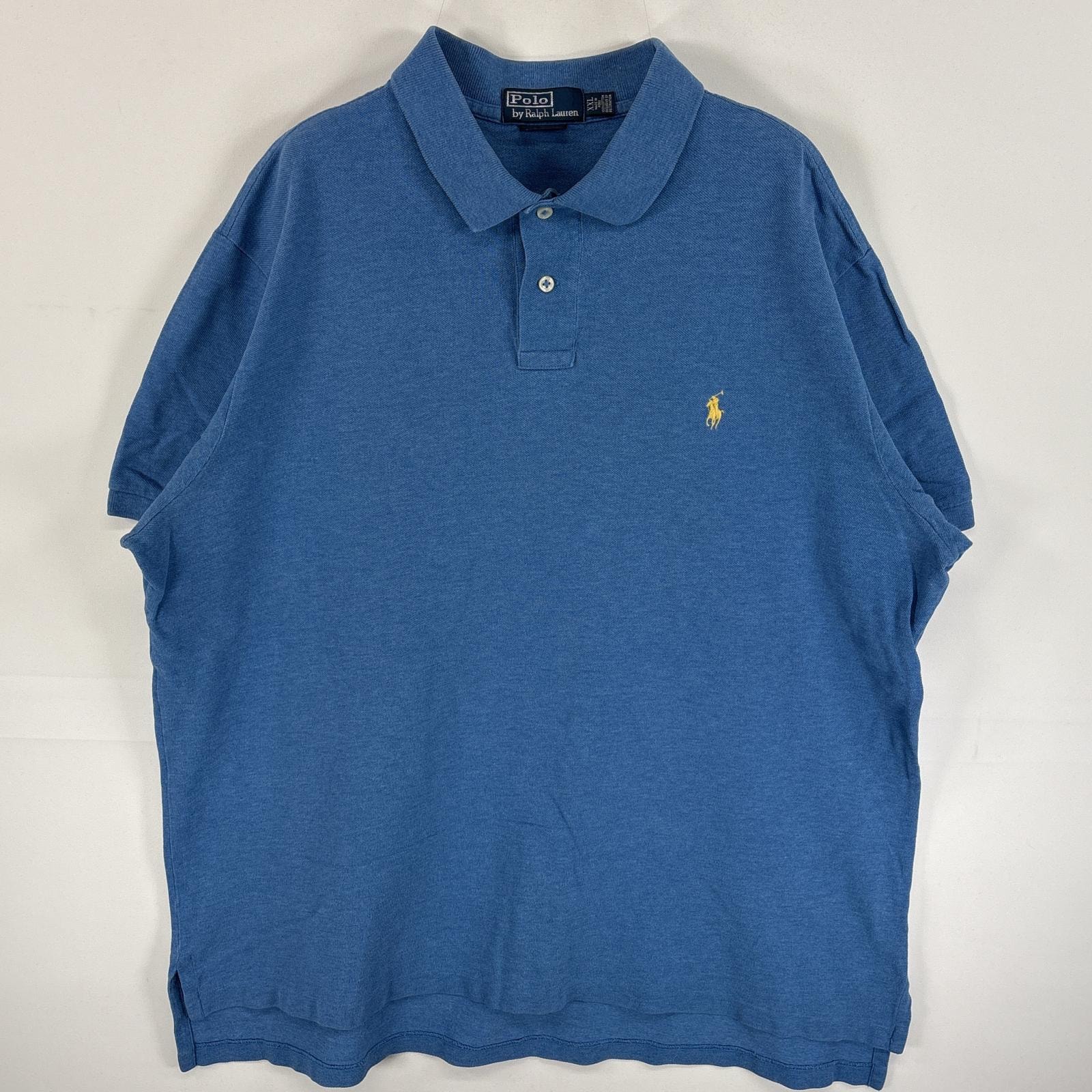 古着 ポロ・ラルフローレン POLO RALPH LAUREN 鹿の子 半袖 ポロシャツ ワンポイント ロゴ 刺繍 大きいサイズ 2ボタン XL ブルー 無地 メンズ