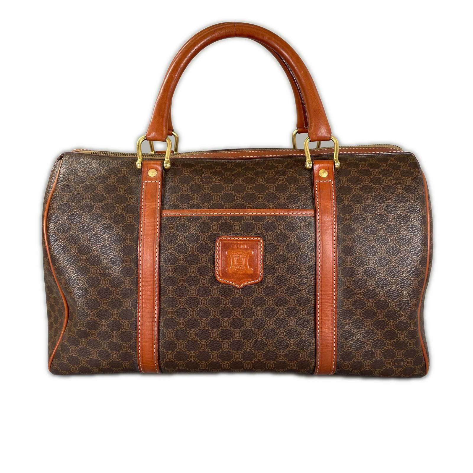 CELINE セリーヌ マカダム ボストンバッグ コーティングキャンバス ブラウン レディース【中古】