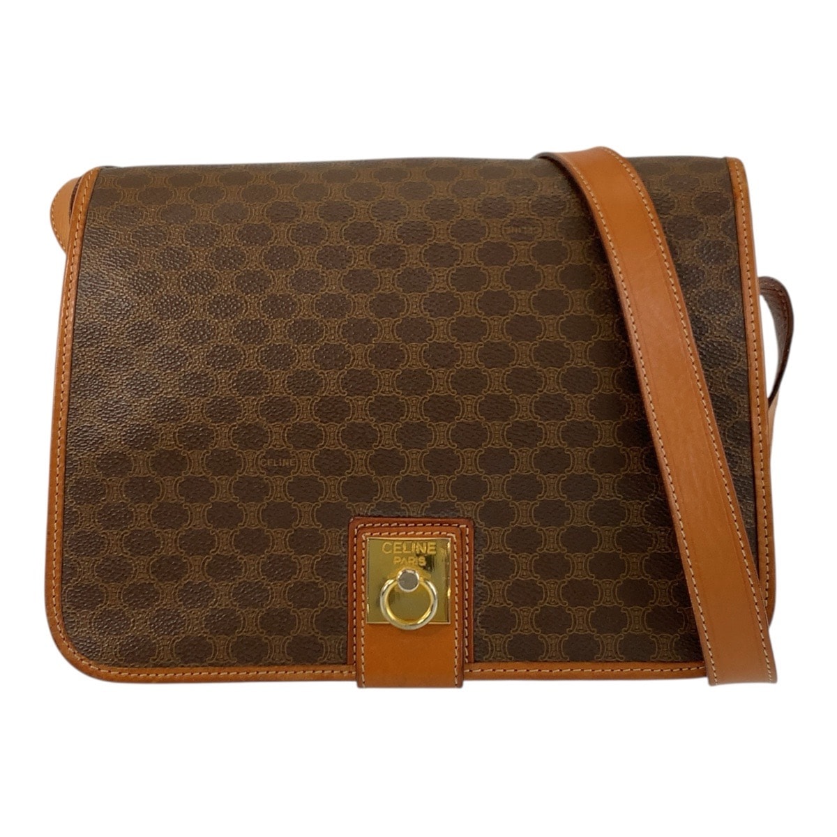 セリーヌ CELINE マカダム ショルダーバッグ バッグ PVCコーティングキャンバス レザー レディース ブラウン系 【中古】