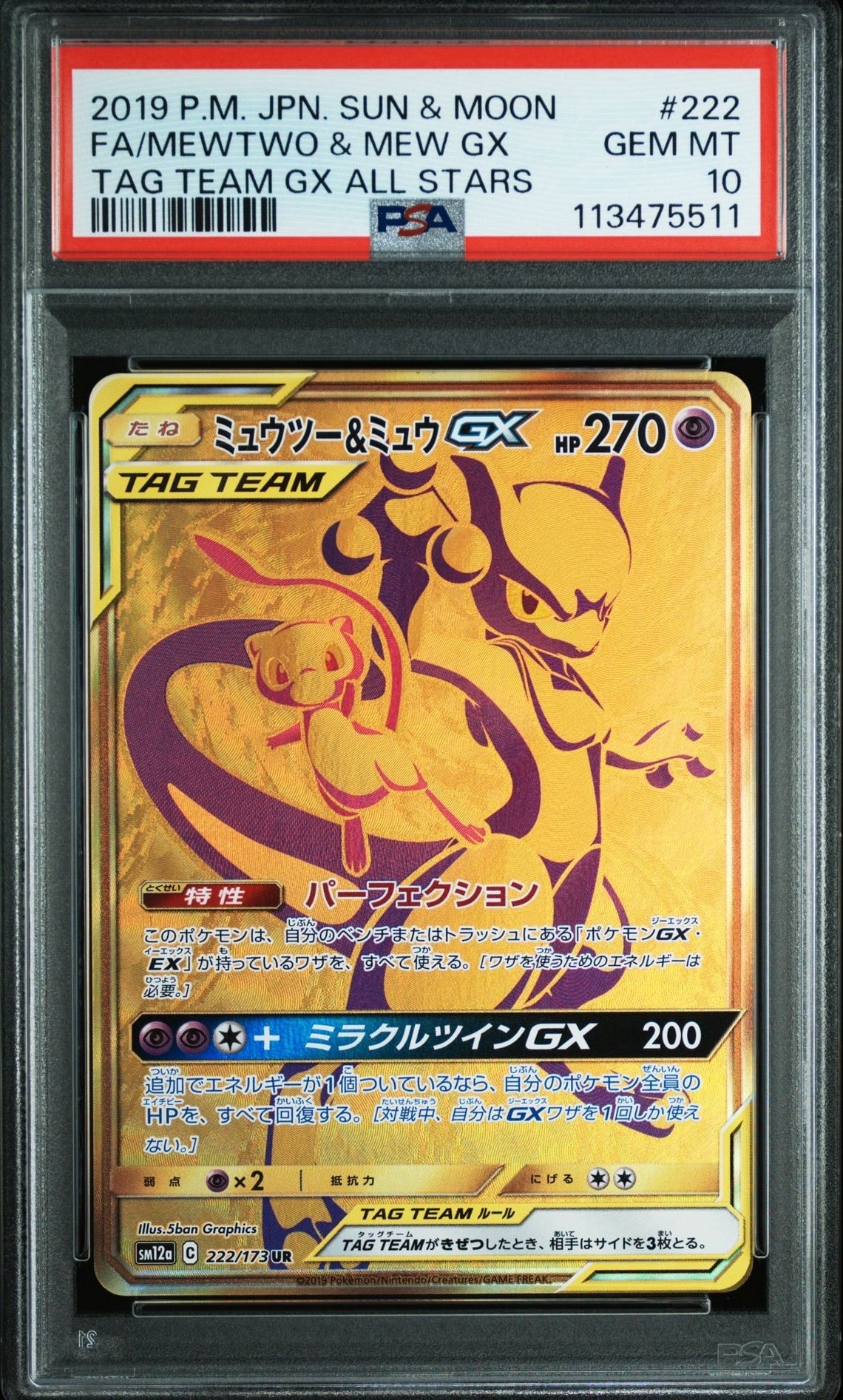 ミュウツー&ミュウGX UR[SM12a 222/173](ハイクラスパック「TAG TEAM GX タッグオールスターズ」)