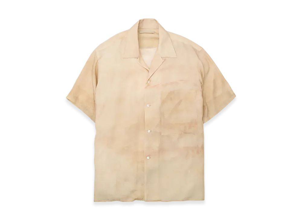YOKE Landscape Printed Tencell Poplin Open Collar Shirt "Beige"