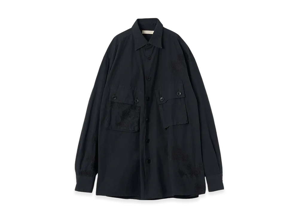 YOKE Cotton Typewriter Cloth Embroidery Utility Shirts "Black"