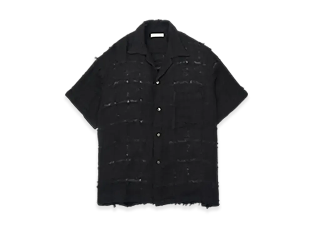 YOKE Fringe Check Tweed Open Collar Shirt "Black"