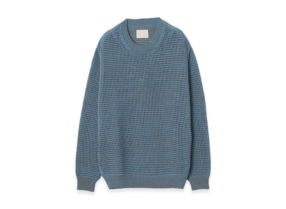 YOKE Gima Cotton Mix Slub Mesh Knit Crewneck "Blue"