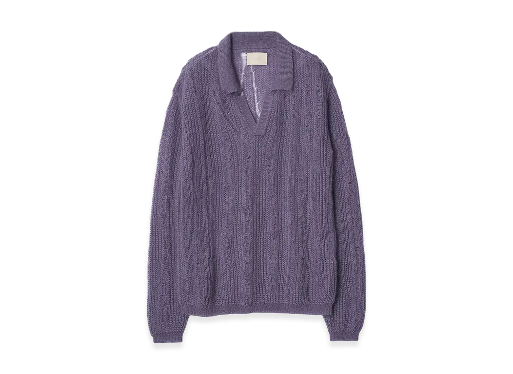 YOKE Silk Kid Mohair Wool Skipper Sweater "Lavendor"