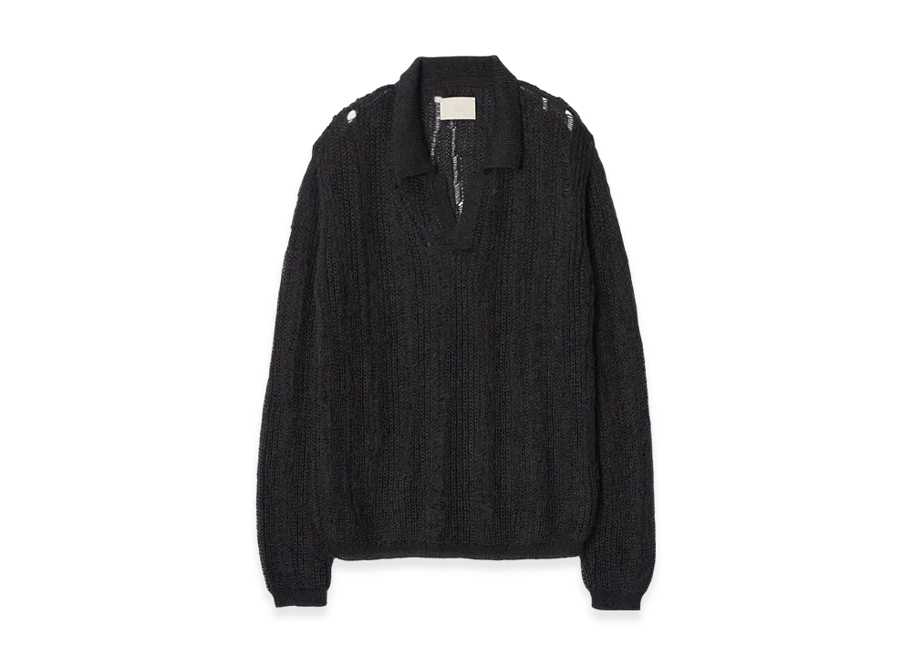YOKE Silk Kid Mohair Wool Skipper Sweater "Black"