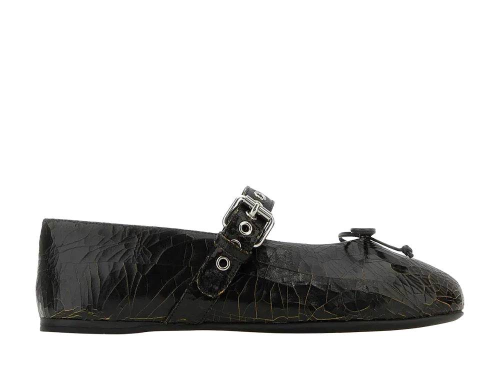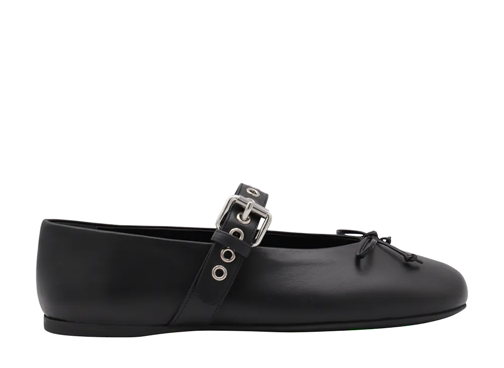MIU MIU Women's Buckle And Bow Ballet Flats "Black"