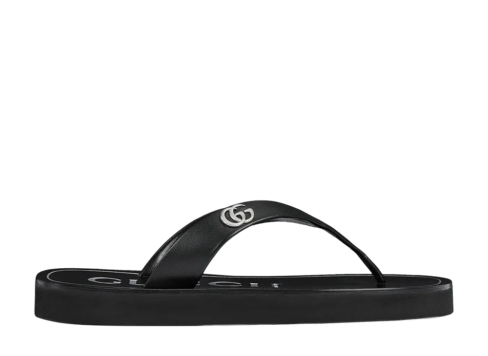 GUCCI Women's Black Leather Thong Slippers "Black"