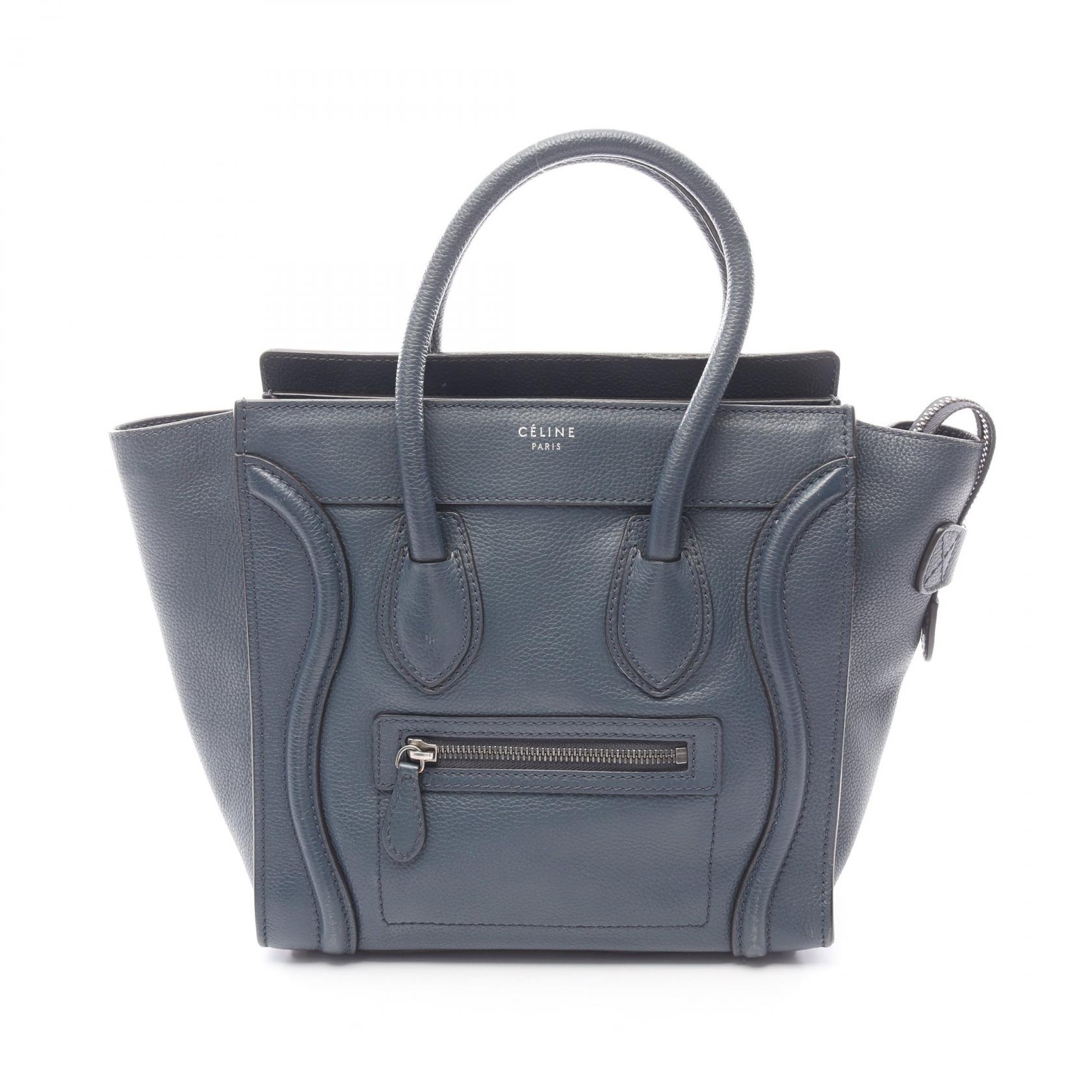 セリーヌ CELINE ラゲージ ナノショッパー ハンドバッグ バッグ レザー レディース ブルー系 【中古】