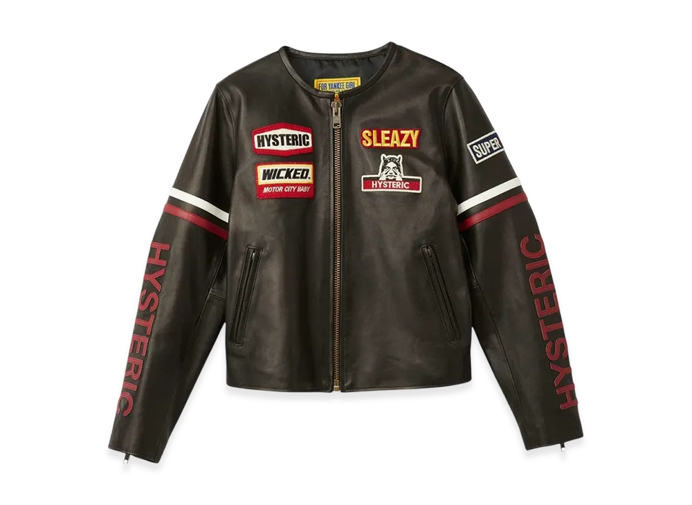 HYSTERIC GLAMOUR Lamb Leather No Collar Racing Jacket "Black"