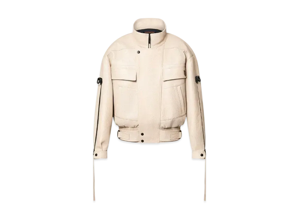 Louis Vuitton Zipper Accent Grained Leather Biker Jacket "Beige"