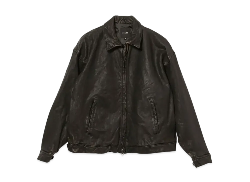 BEAMS Distressed Leather Zip Blouson "Black"