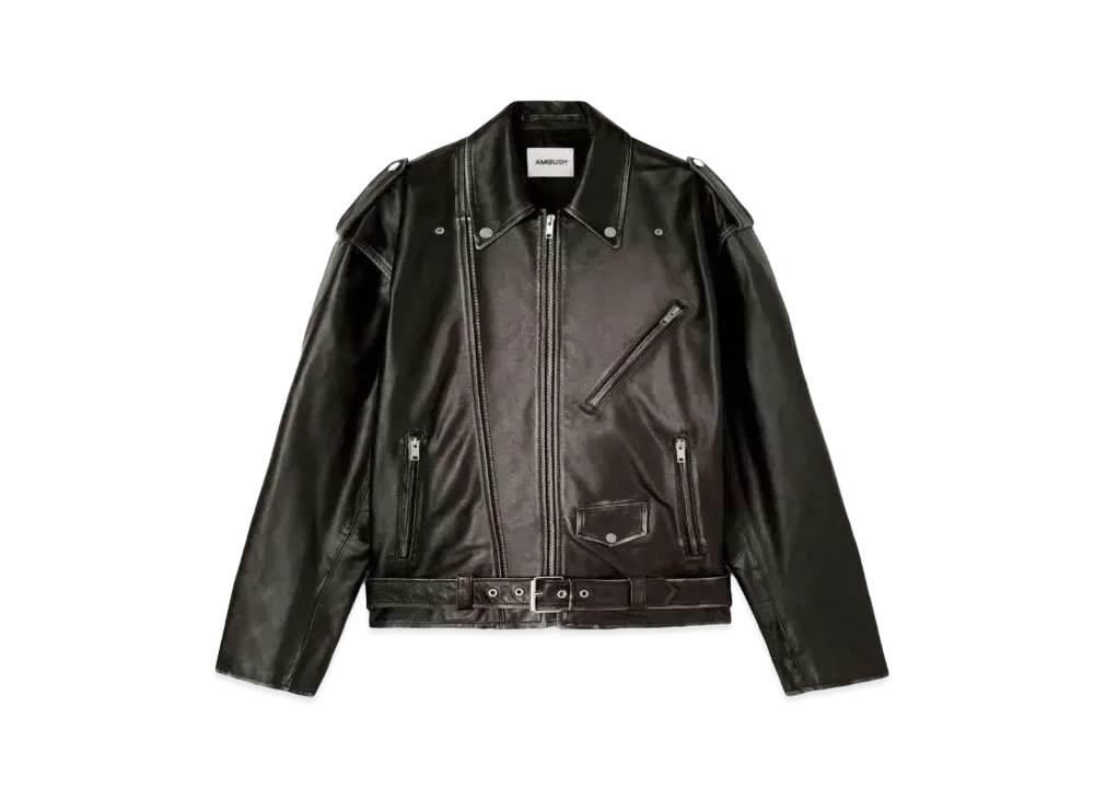AMBUSH Zipped Leather Biker Jacket "Black"