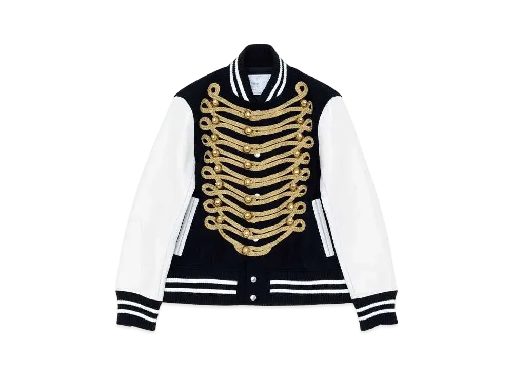 sacai Gem Women's Wool Melton X Leather Blouson "Navy/Off White"