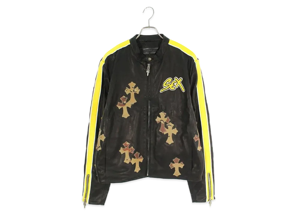 Chrome Hearts PPO Racing 2 Sex RCD Cross Patch Single Rider Slider Jacket "Black/Yellow/Brown"