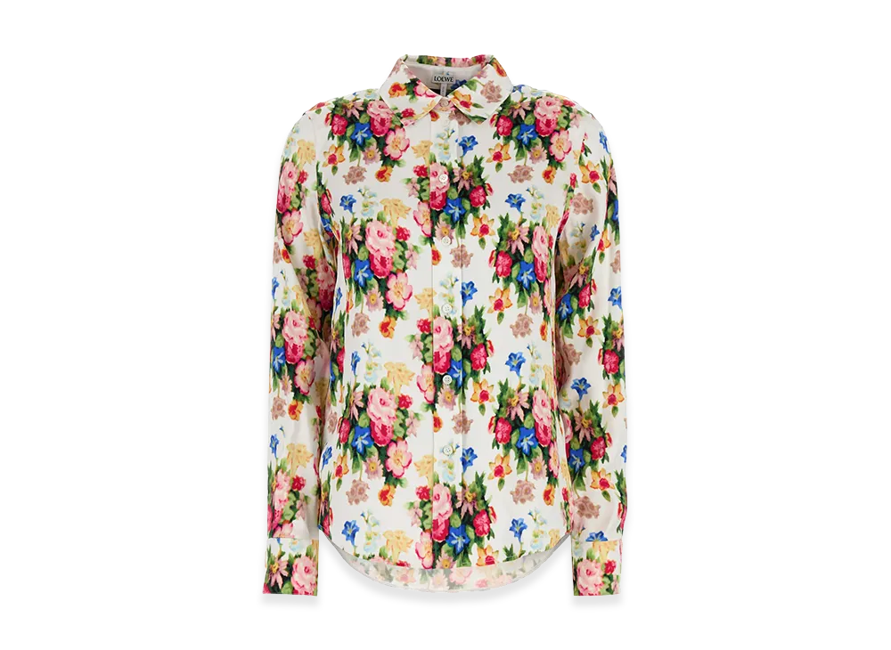 LOEWE Women's Printed Satin Shirt "White/Blue"