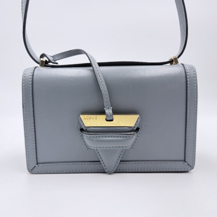 LOEWE(ロエベ)バルセロナ ショルダーバッグ レザー グレーブルー ゴールド金具
