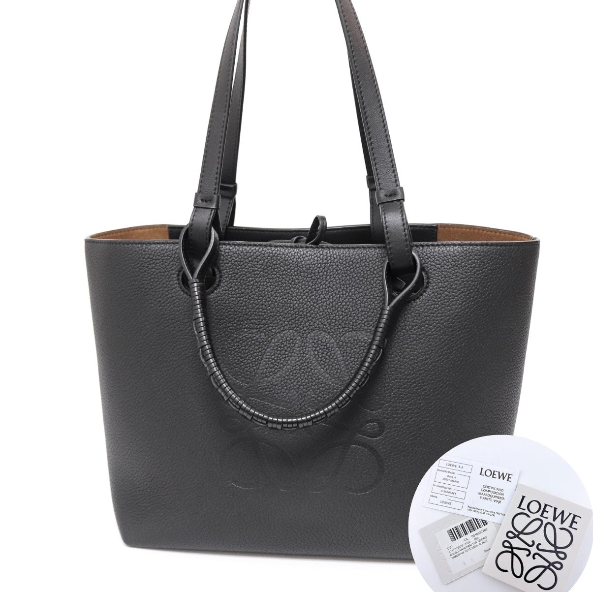 LOEWE 展示品級 ロエベ IKEBANA イケバナ トート トートバッグ A858I23X01 レザー コットン キャンバス ブラック ハンドバッグ 未使用 極美品 SAランク 鑑定済 中古 ロエベバッグ