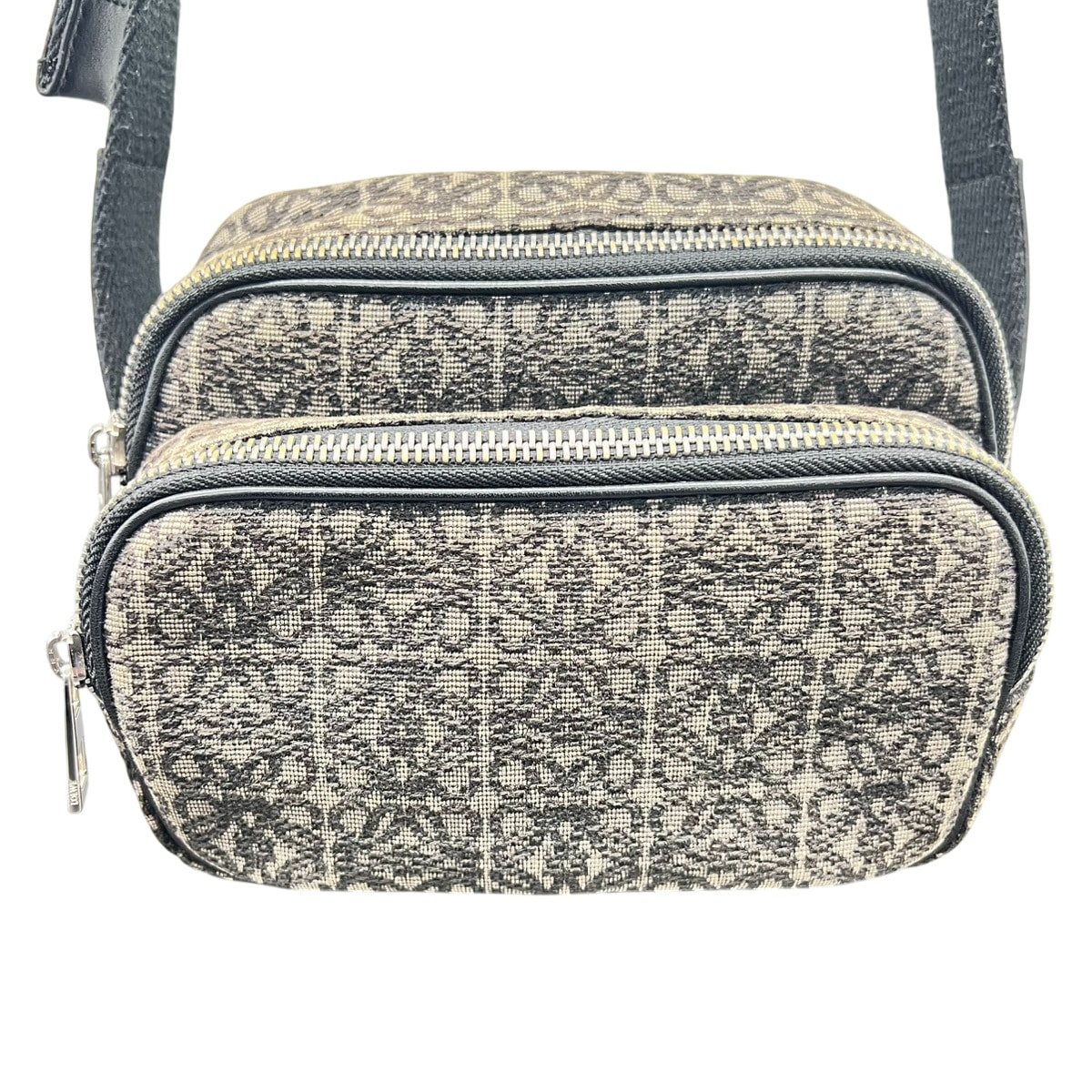 LOEWE ロエベ リピート アナグラム カメラバッグ ミニ ショルダーバッグ B604Z80X01 キャンバス ジャガード レザー カーキ ブラック クロスボディ ポシェット ミニバッグ Bランク 中古 鑑定済 ロエベバッグ