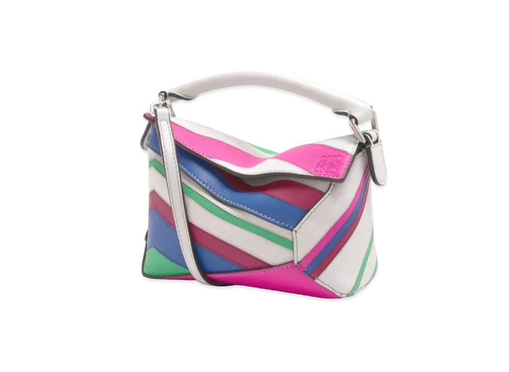 LOEWE Zigzag Mini Puzzle Edge In Classic Calfskin "Grey/Multicolour"