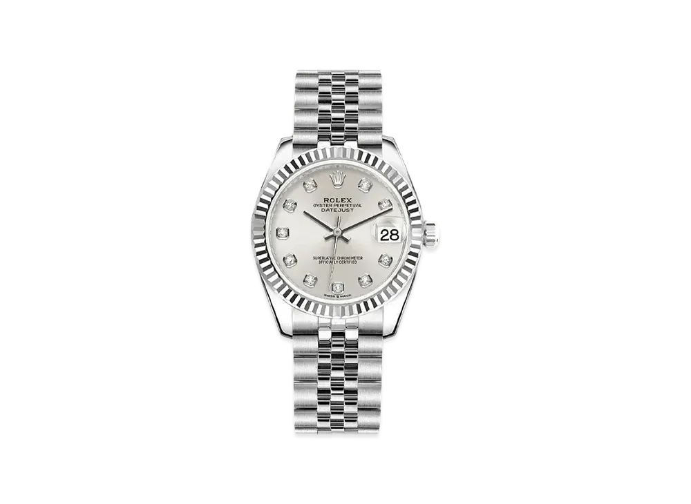 ROLEX Datejust 31 Oyster 31mm 10P Diamonds "Silver/Oyster Steel/White Gold"