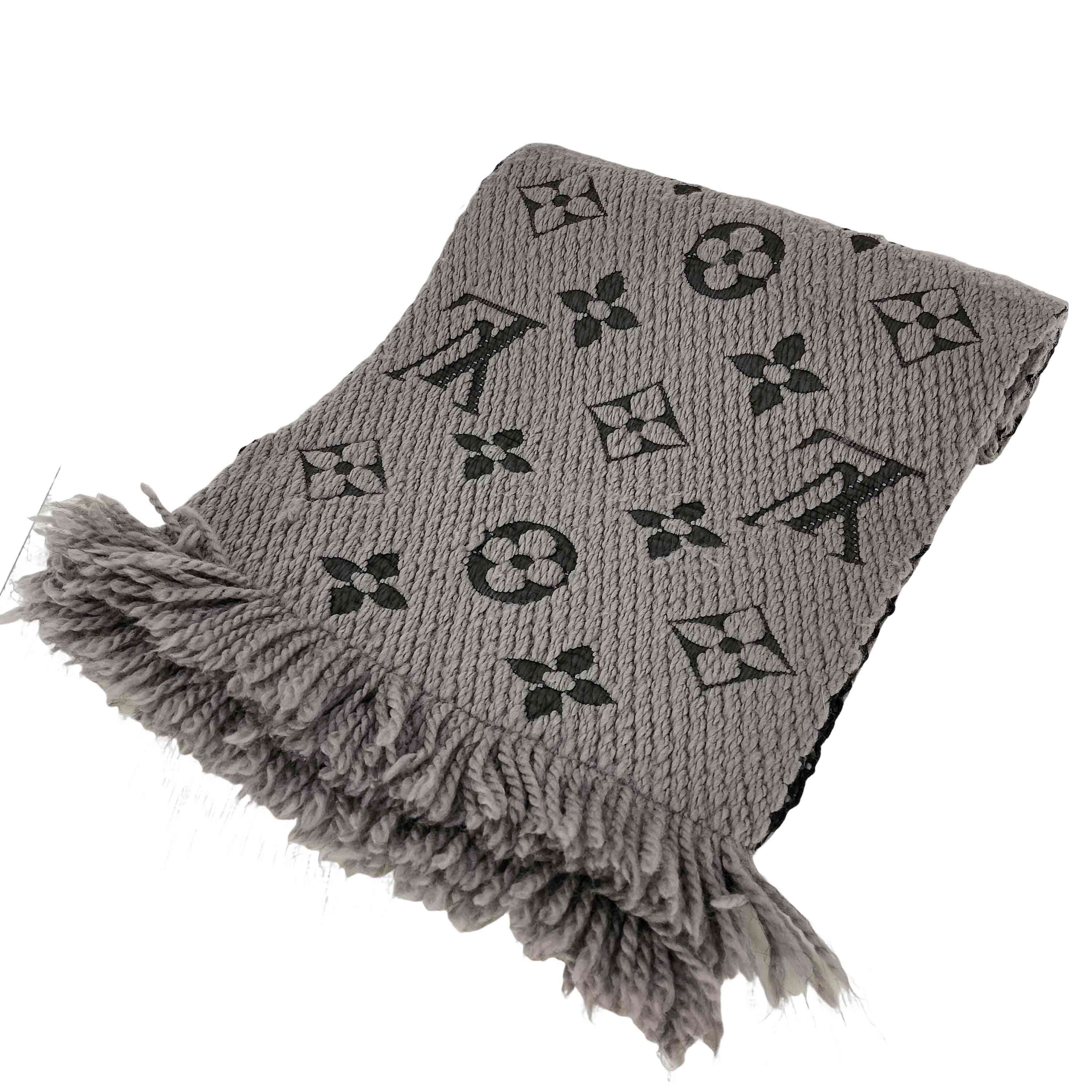 M72242 エシャルプ・ロゴマニア ウール/シルク モノグラム フリンジ マフラー【1140848257668】