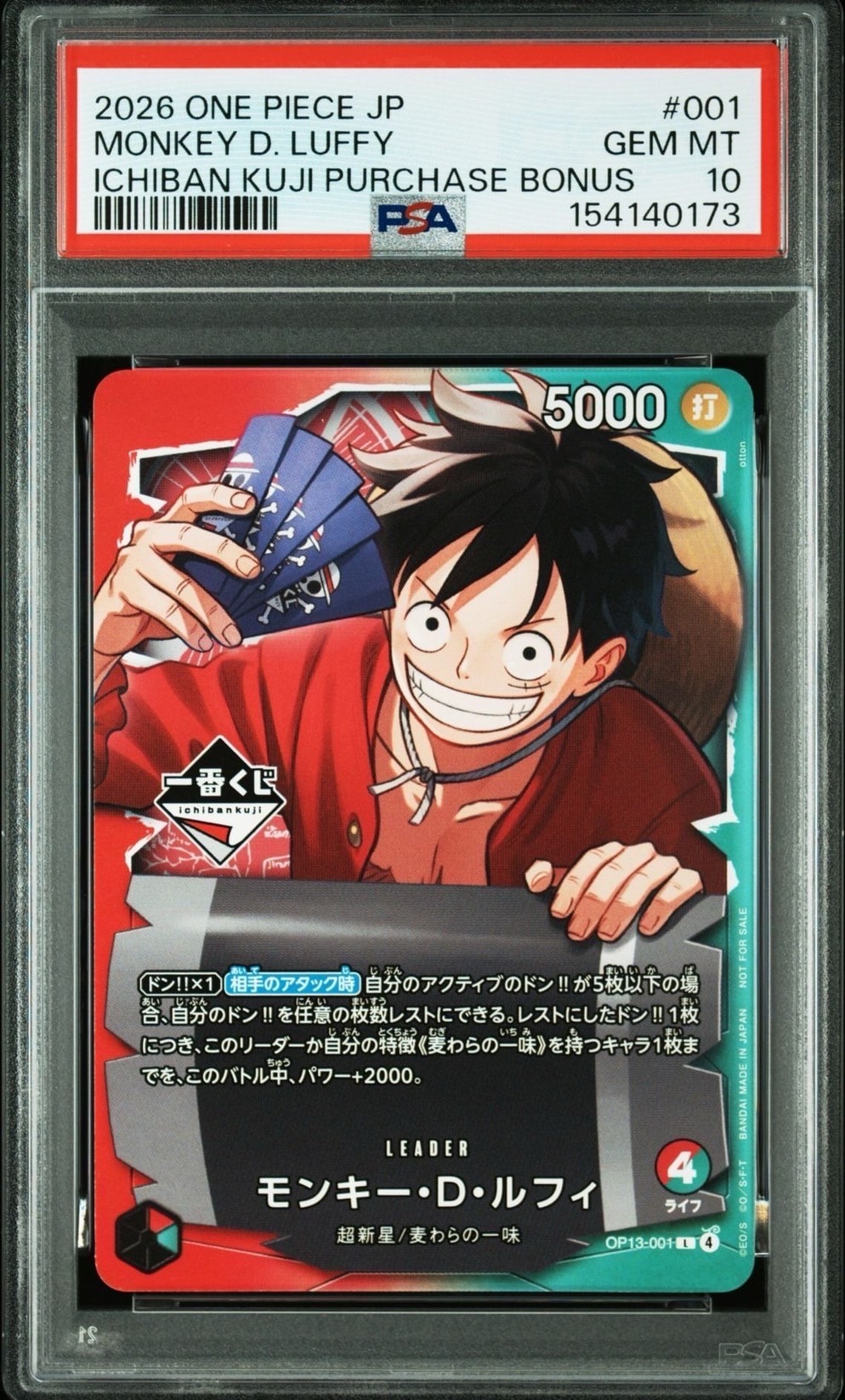 モンキー・D・ルフィ L :開封済 [OP13-001](プロモーションカード「一番くじ ワンピースカードゲーム 購入特典」)