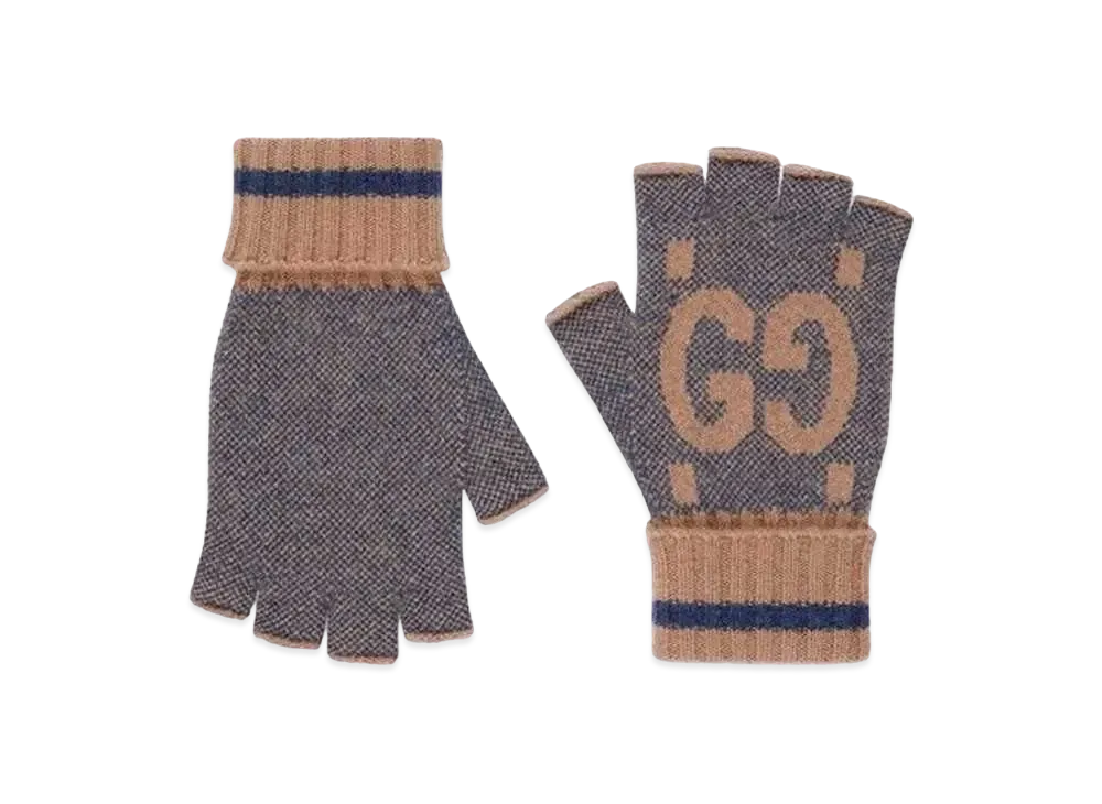GUCCI GG Cashmere Fingerless Gloves "Beige/Blue"