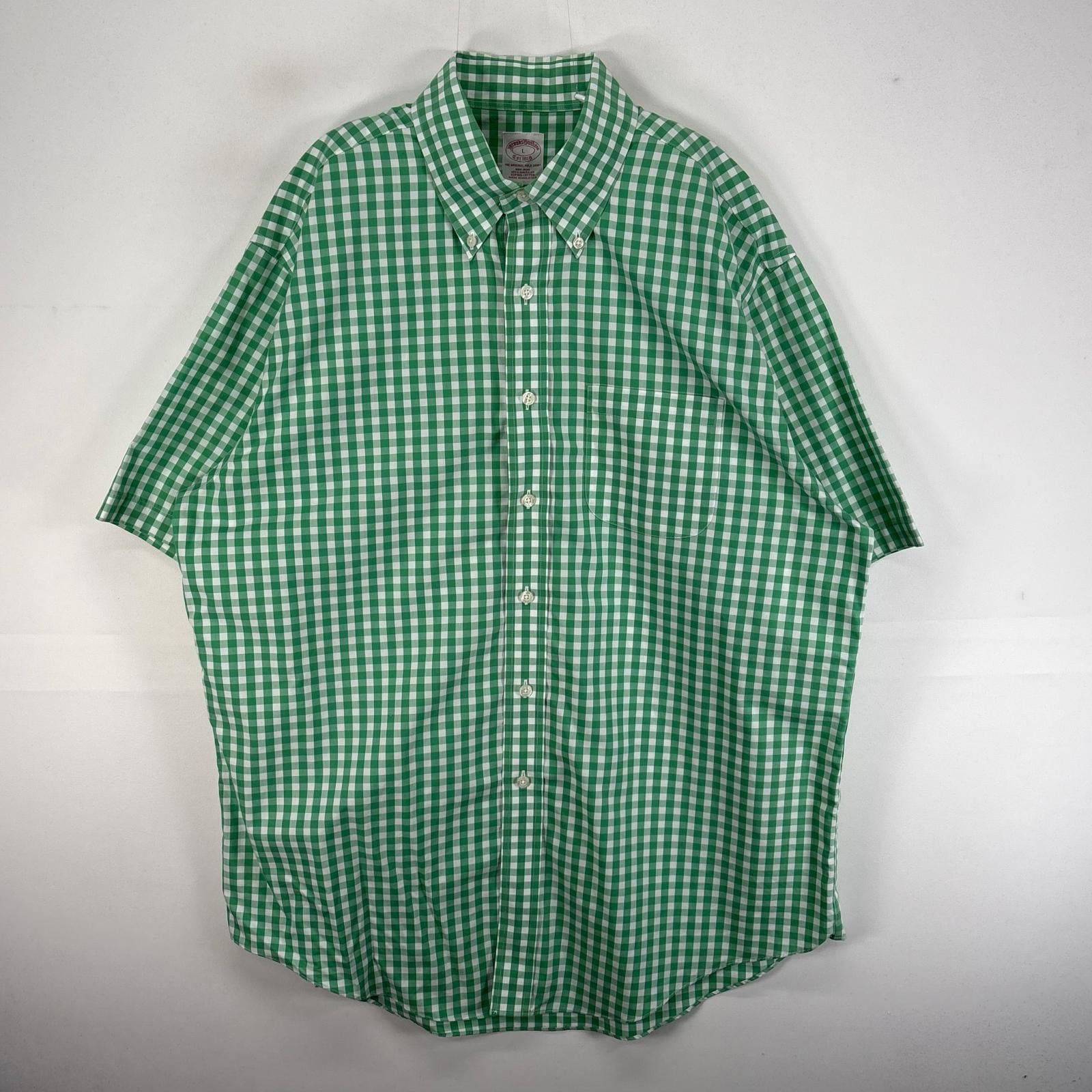 古着 ブルックスブラザーズ Brooks Brothers 半袖シャツ 胸ポケ CLASSIC L グリーン系 チェック メンズ