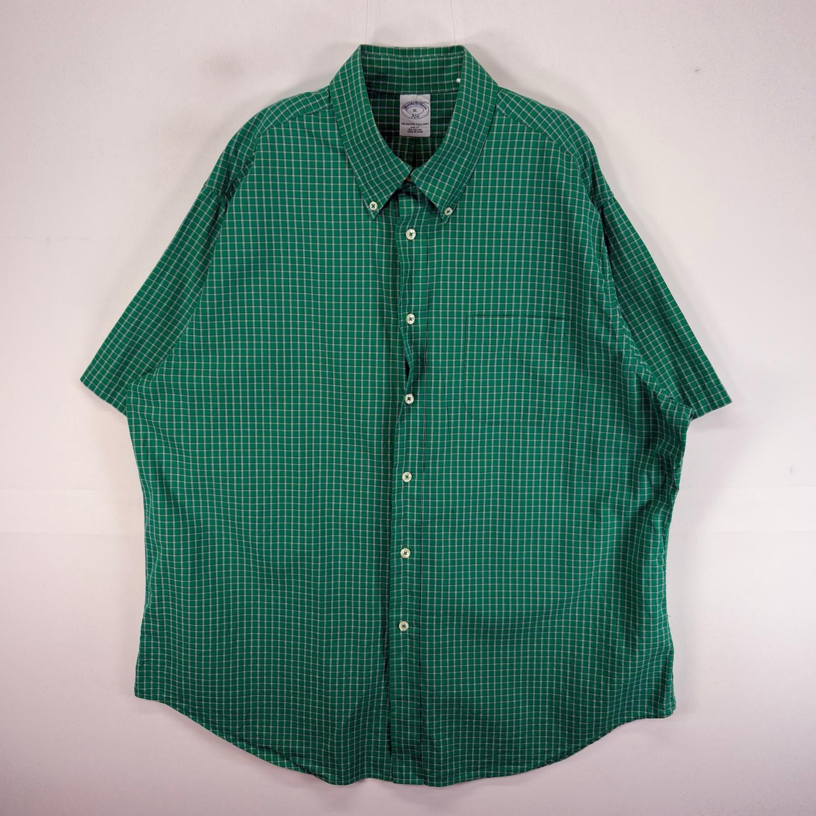 古着 ブルックスブラザーズ Brooks Brothers 半袖シャツ 胸ポケ 346 XL グリーン系 チェック メンズ