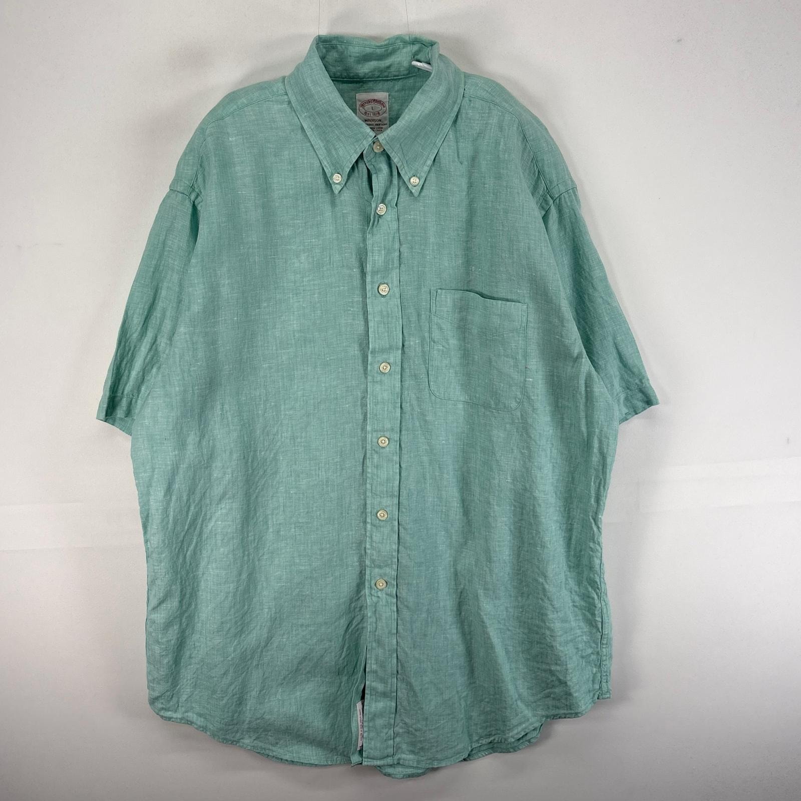 古着 ブルックスブラザーズ Brooks Brothers 半袖シャツ 胸ポケ 1818 リネン L グリーン系 無地 メンズ