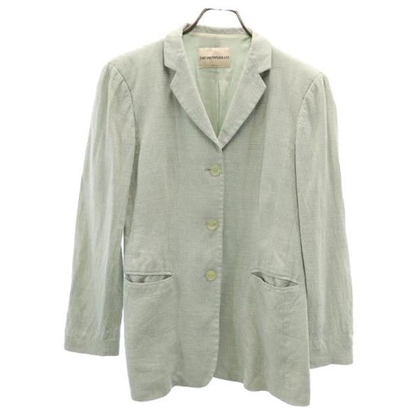 Emporio Armani エンポリオアルマーニ イタリア製 リネン シルクブレンド チェック柄 長袖 テーラードジャケット 40 グリーン系