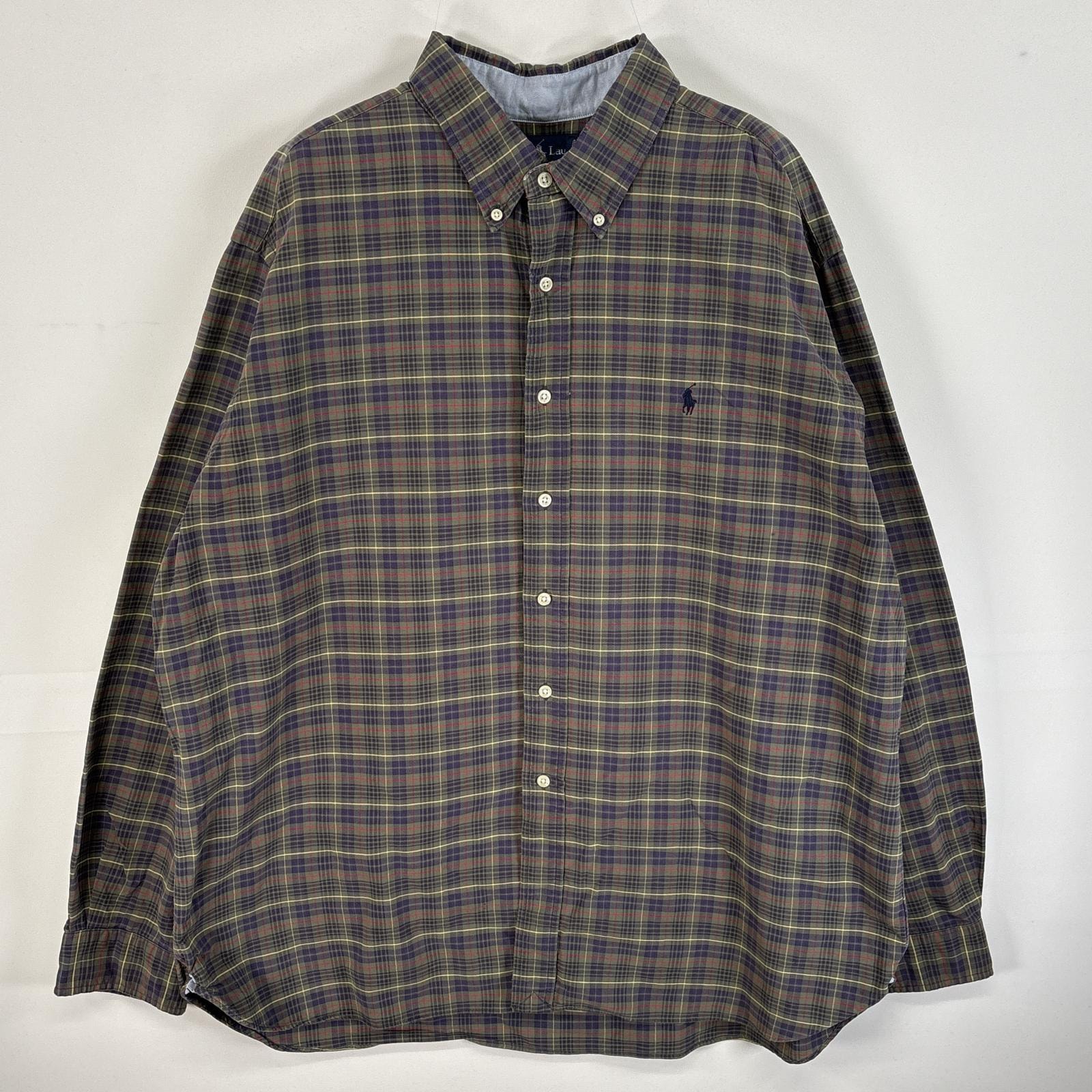 古着 90's/90年代 ラルフローレン RALPH LAUREN 長袖シャツ ワンポイント ロゴ 刺繍 チェック ボタンダウンシャツ XL グリーン系 マルチカラー メンズ