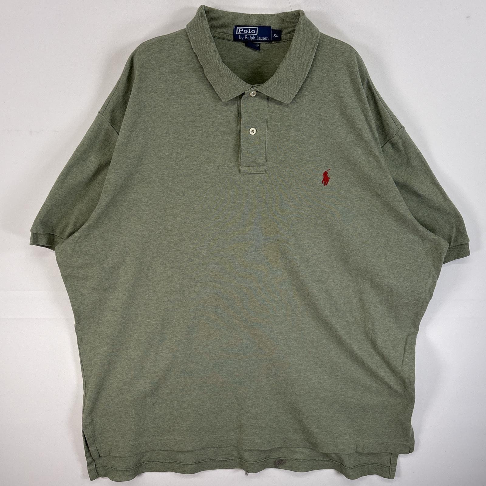 古着 90's/90年代 ポロバイラルフローレン Polo by Ralph Lauren 鹿の子 半袖 ポロシャツ ワンポイント ロゴ 刺繍 大きいサイズ 2ボタン XL グリーン系 無地 メンズ