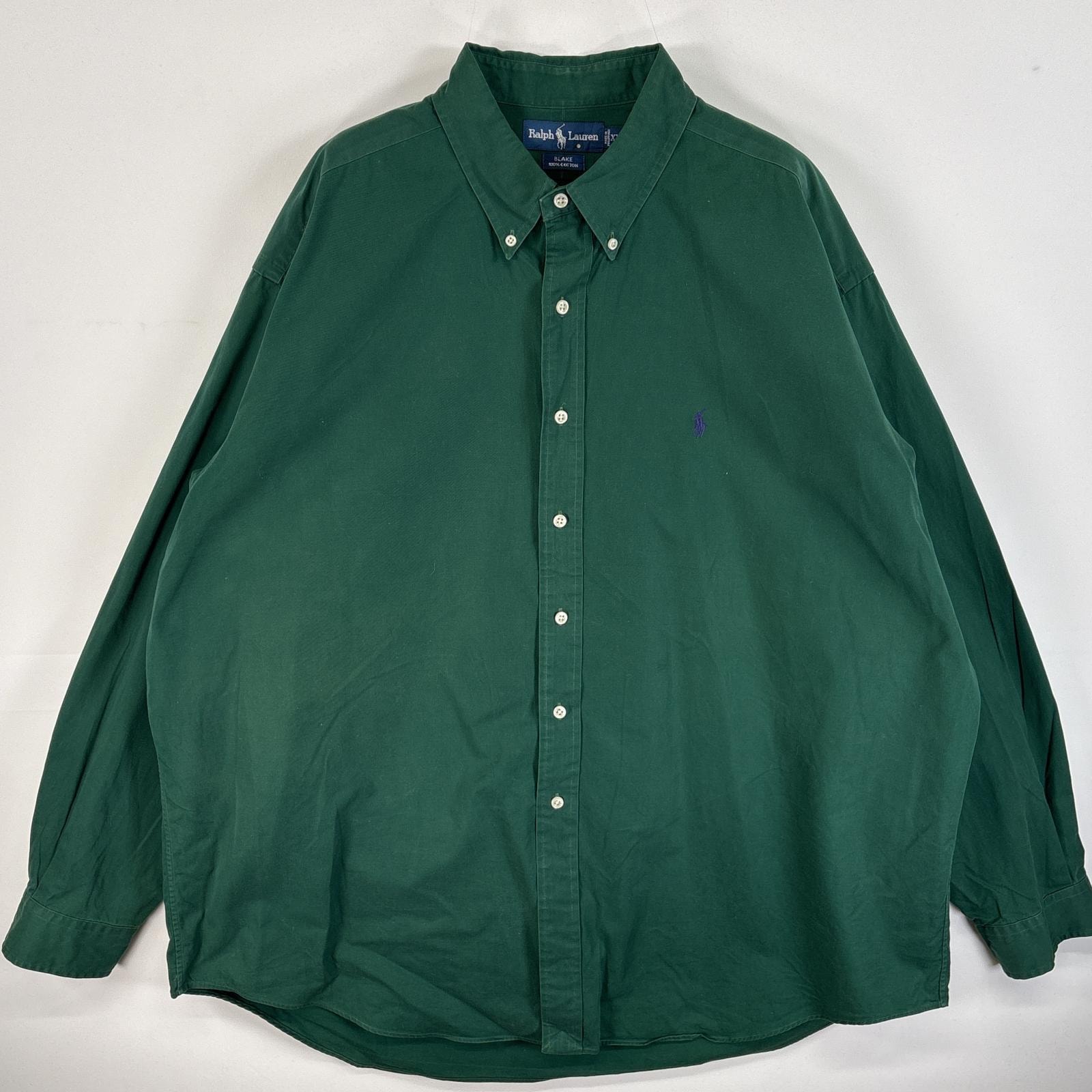 古着 90's/90年代 ラルフローレン RALPH LAUREN 長袖シャツ ワンポイント ロゴ 刺繍 大きいサイズ ボタンダウンシャツ 14041 グリーン 無地 メンズ