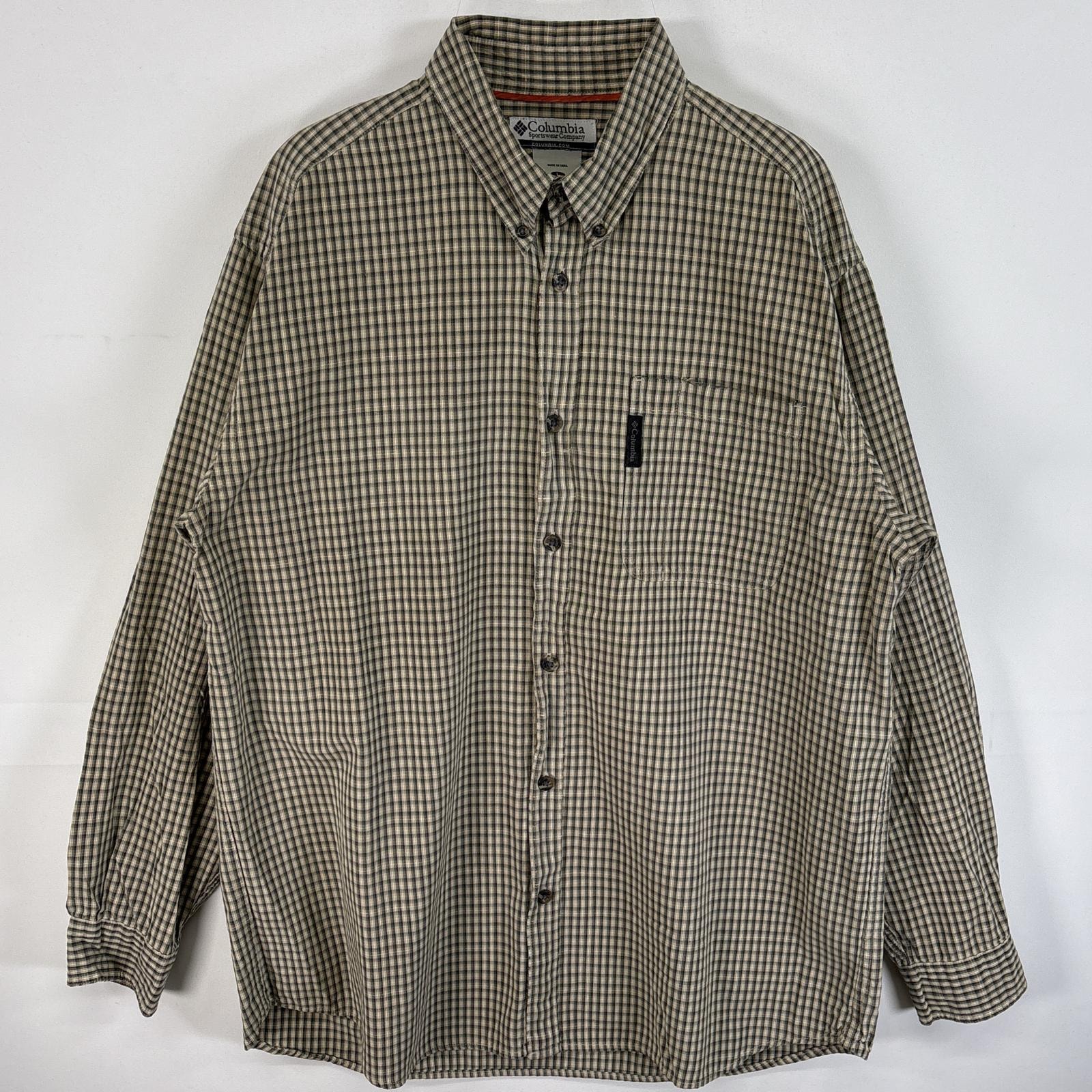 古着 コロンビア Columbia 長袖シャツ ボタンダウンシャツ ワンポイント ロゴ 胸ポケ L グリーン系 チェック メンズ