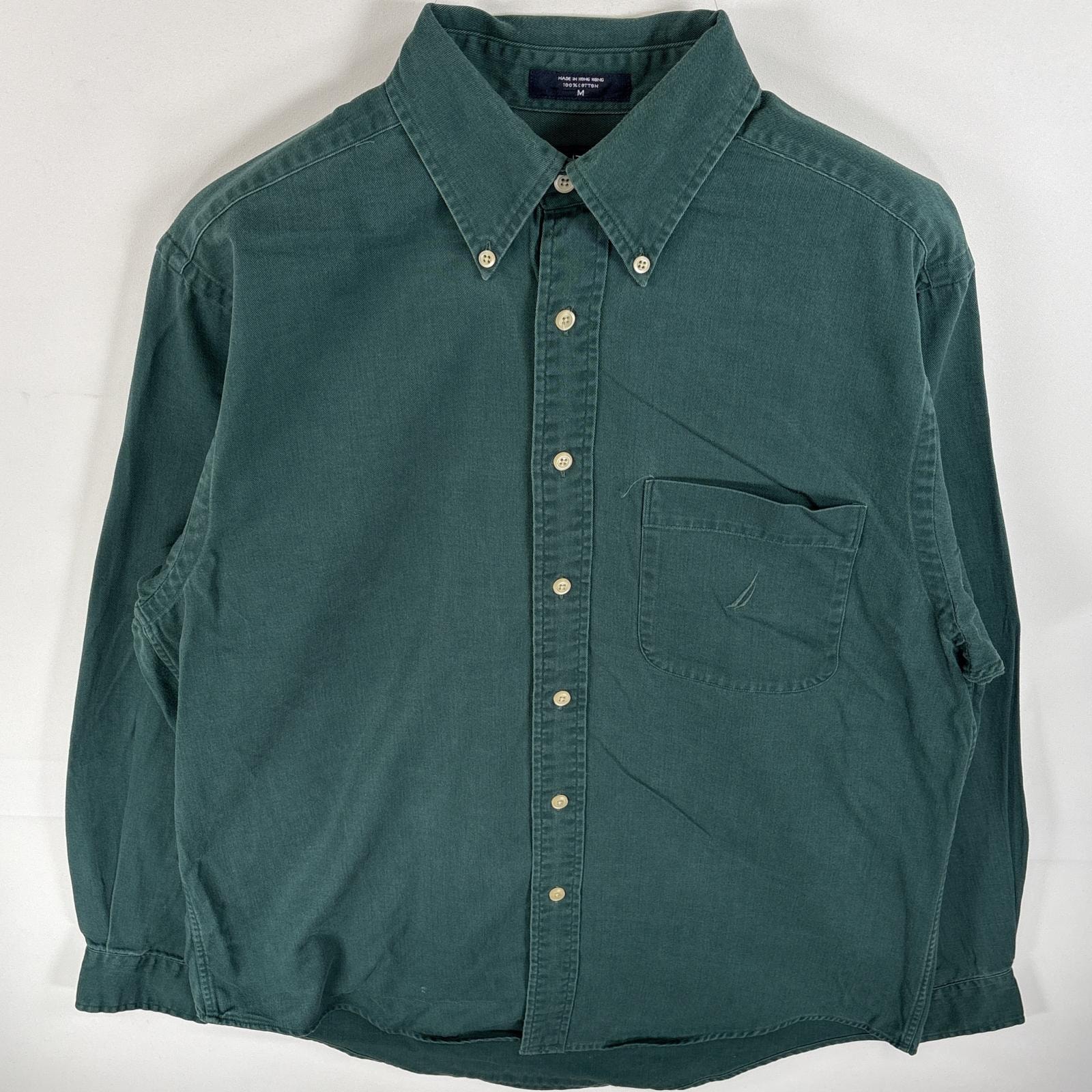 古着 ノーティカ NAUTICA 長袖シャツ ボタンダウンシャツ ワンポイント ロゴ 刺繍 オックスフォードシャツ M グリーン 無地 メンズ