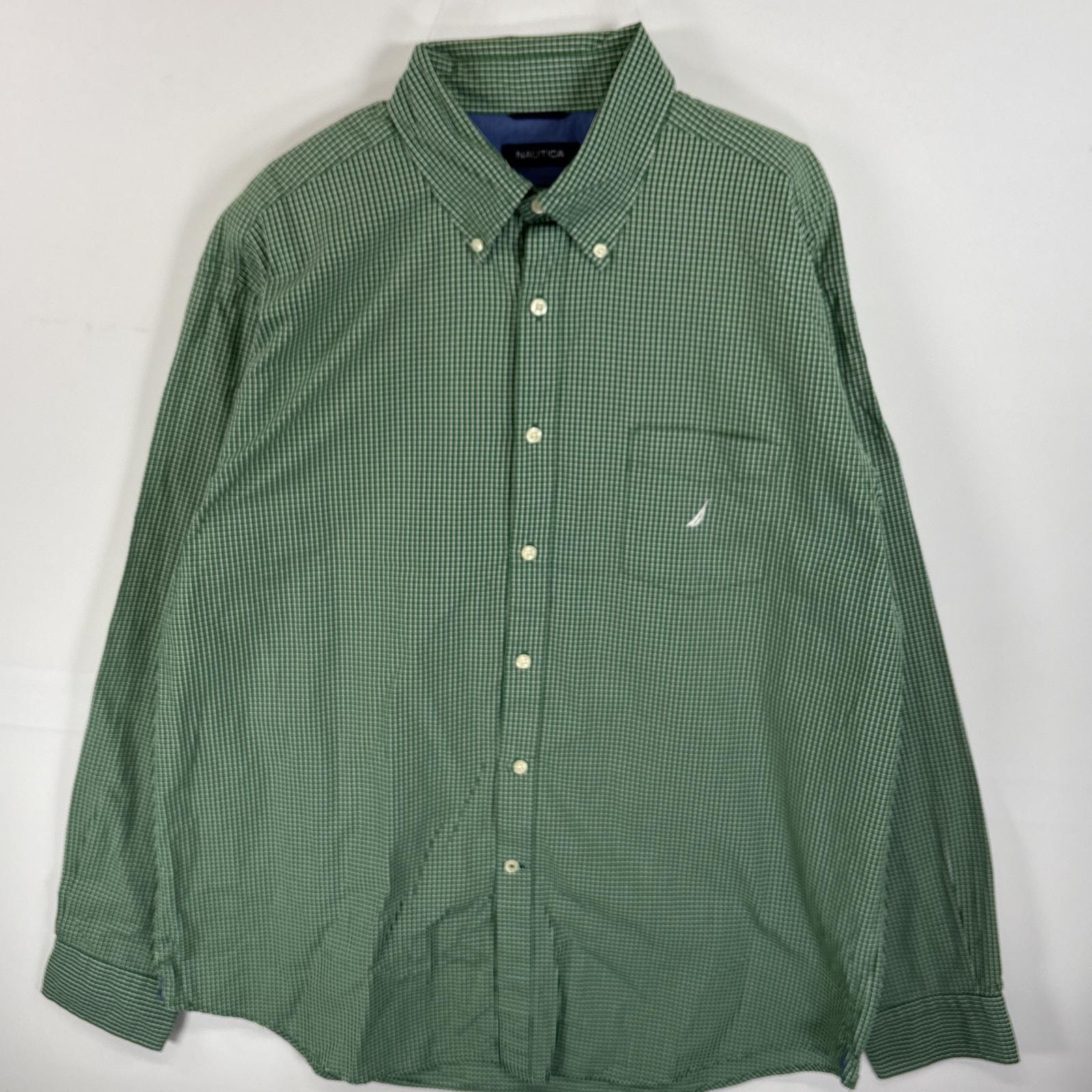 古着 ノーティカ NAUTICA 長袖シャツ ボタンダウンシャツ ワンポイント 刺繍 ロゴ 胸ポケ XL グリーン系 チェック メンズ