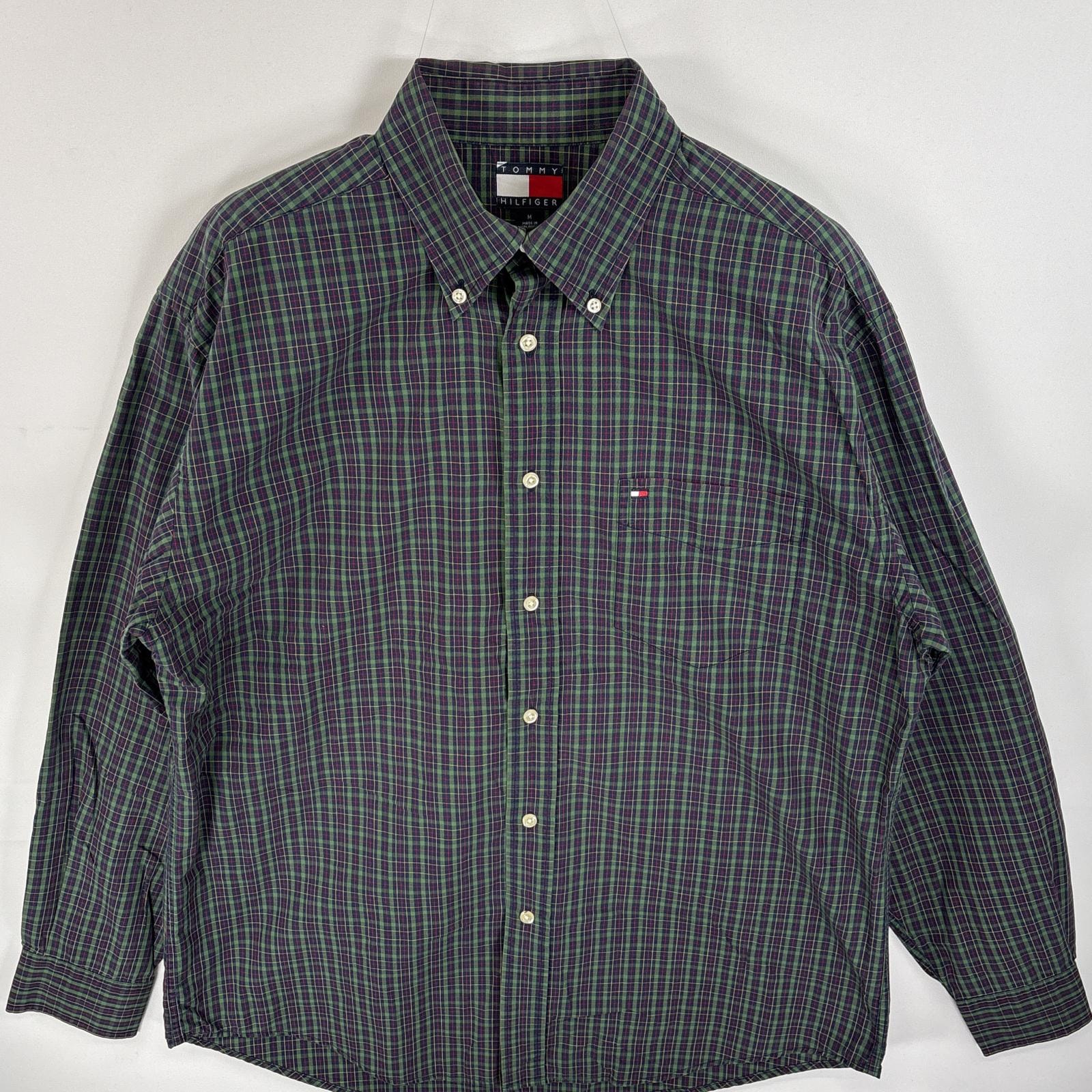 古着 90's/90年代 トミーヒルフィガー TOMMY HILFIGER 長袖シャツ ボタンダウンシャツ ワンポイント ロゴ 刺繍 胸ポケ M グリーン系 チェック メンズ