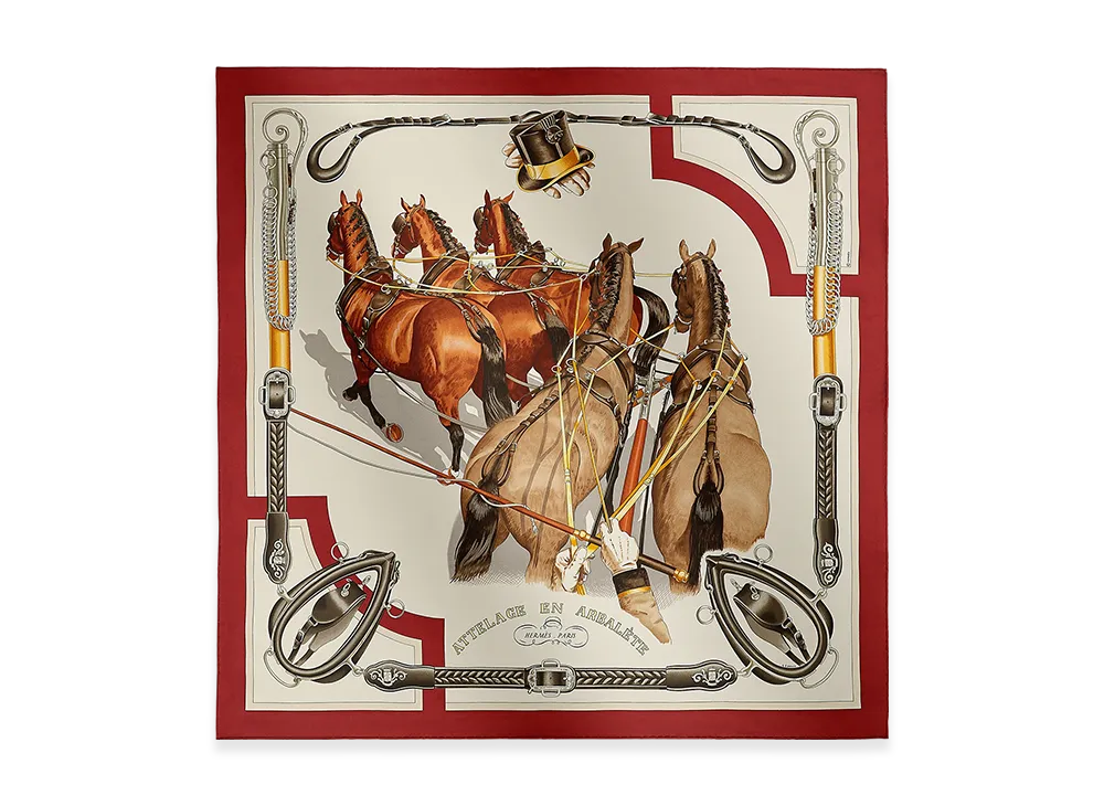 Hermes Scarf 90 Attelage en Arbalete Forever "Brown/Red"