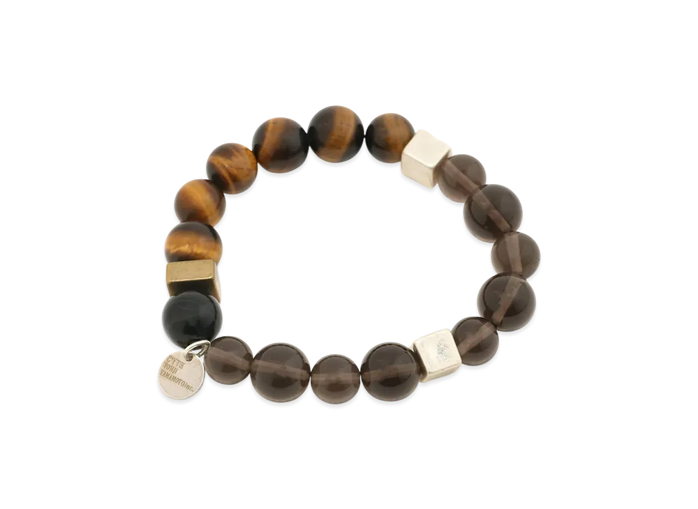 S'YTE Tiger's Eye Smoky Quartz Brass Bracelet "Brown"