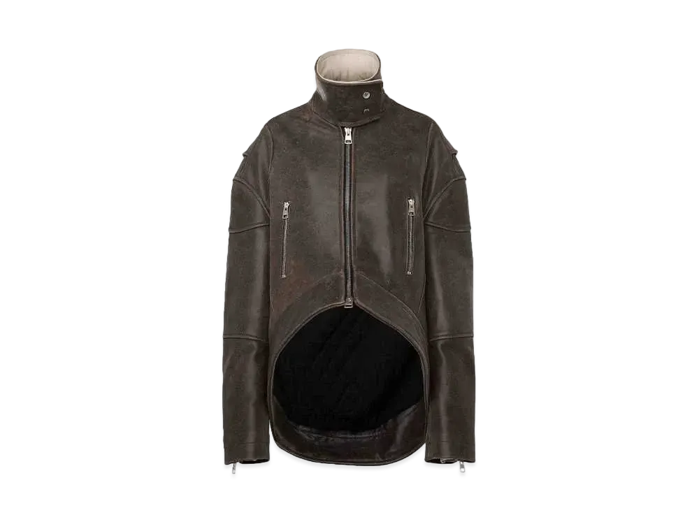 JW ANDERSON Curved Leather Hem High Neck Jacket "Brown"