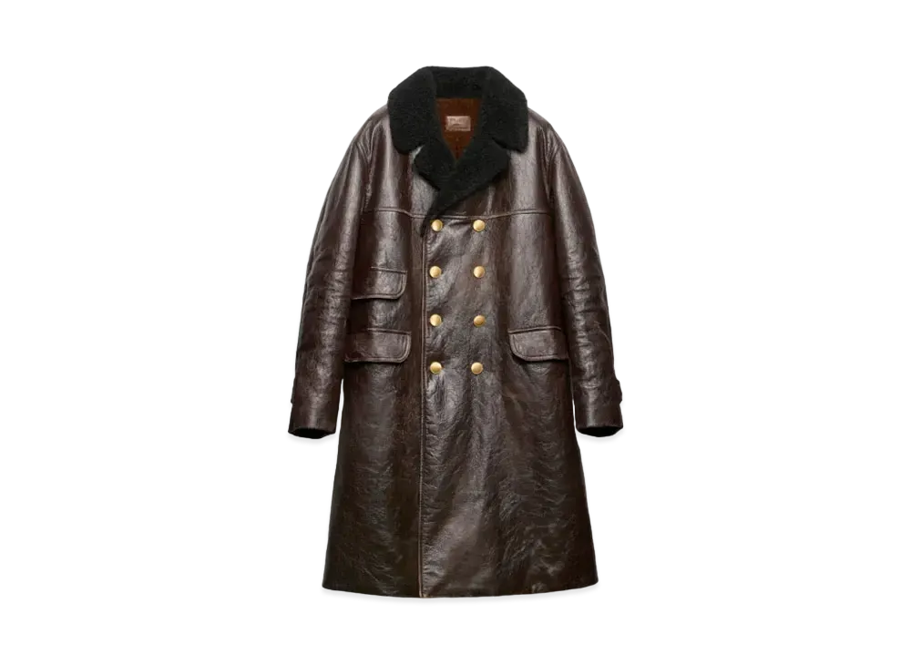 PRADA Men's Double-Breasted Leather Coat "Brown"