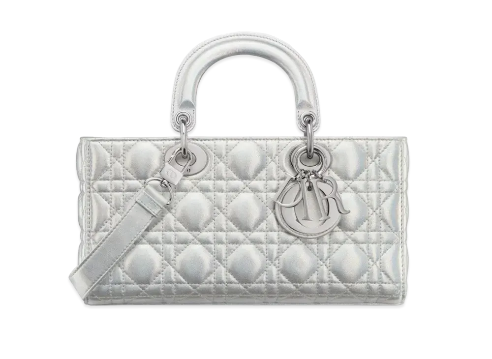 Dior Medium Lady D-Joy Bag Iridescent Metallic Cannage Lambskin "Silver"