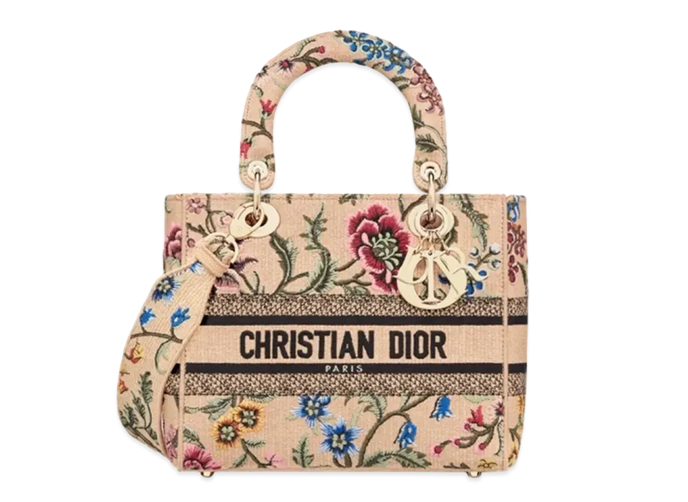 Dior Medium Lady D Lite Bag Embroidered Petites Fleurs Raffia "Multicolor""