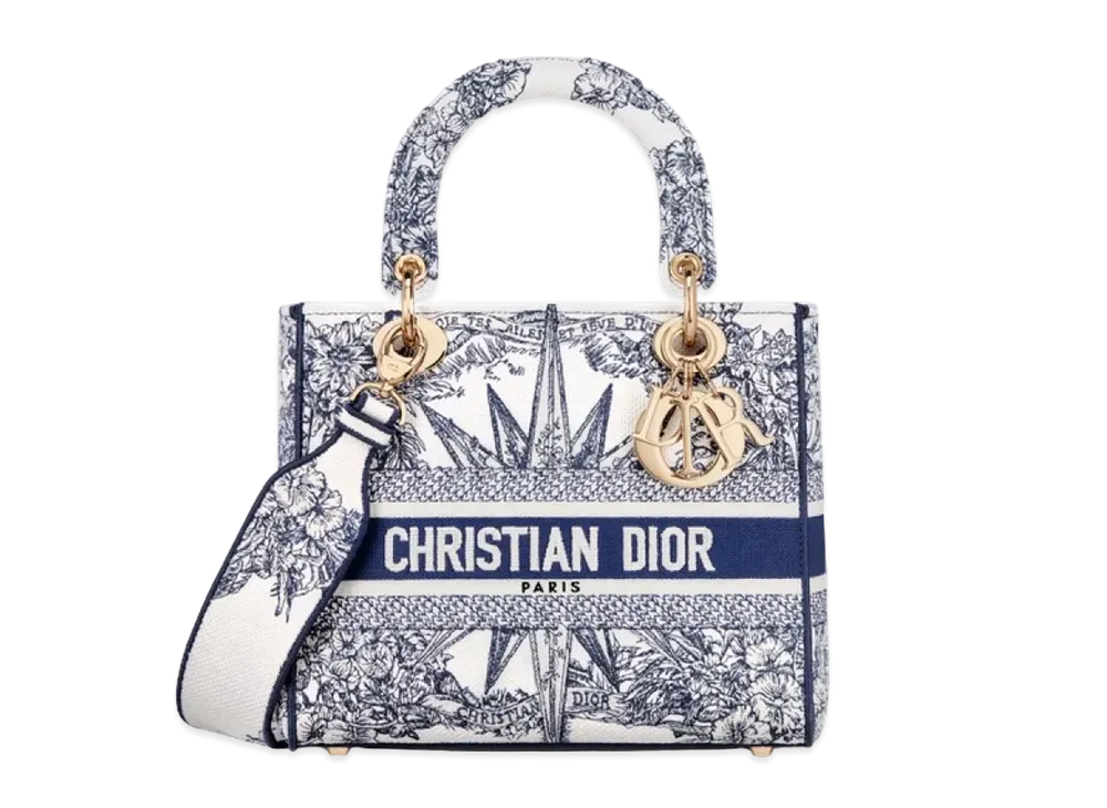 Dior Medium Lady D Lite Bag Reve Dinfini Embroidery "White/Blue"
