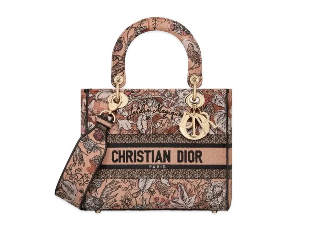 Dior Medium Lady D Lite Bag Jardin Magique Embroidery "Powder Pink"