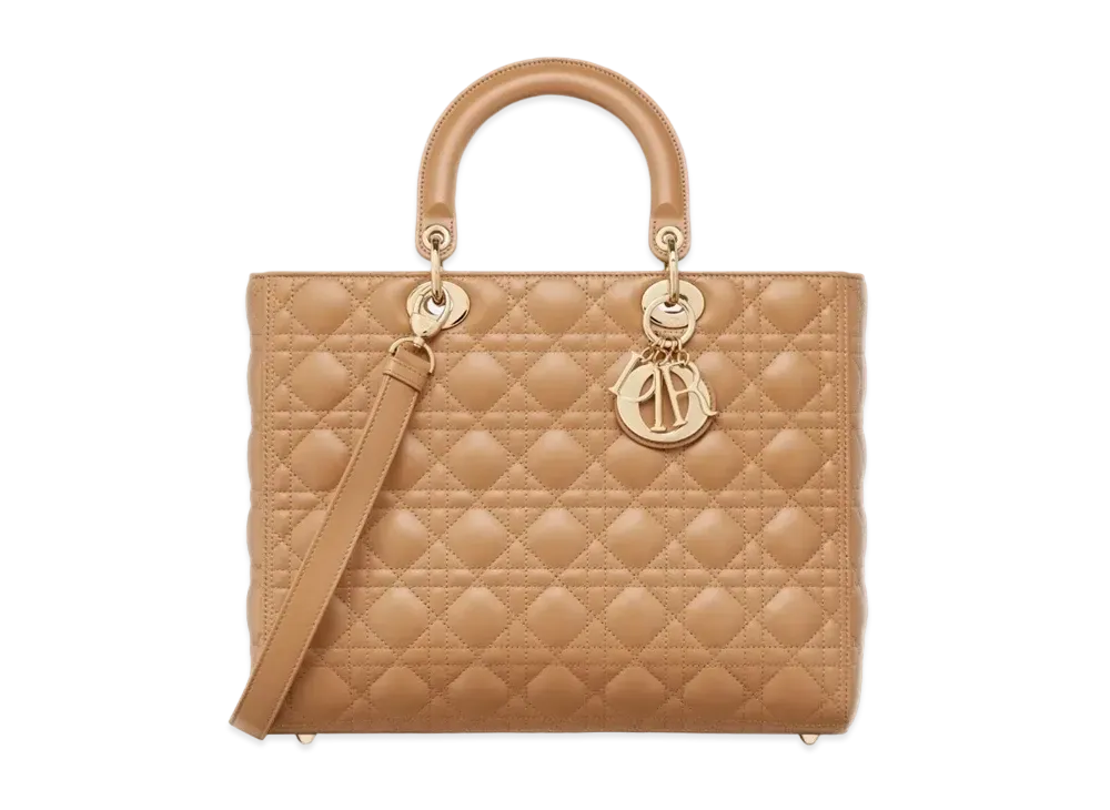 Dior Large Lady Bag Cannage Lambskin Medium "Tan"